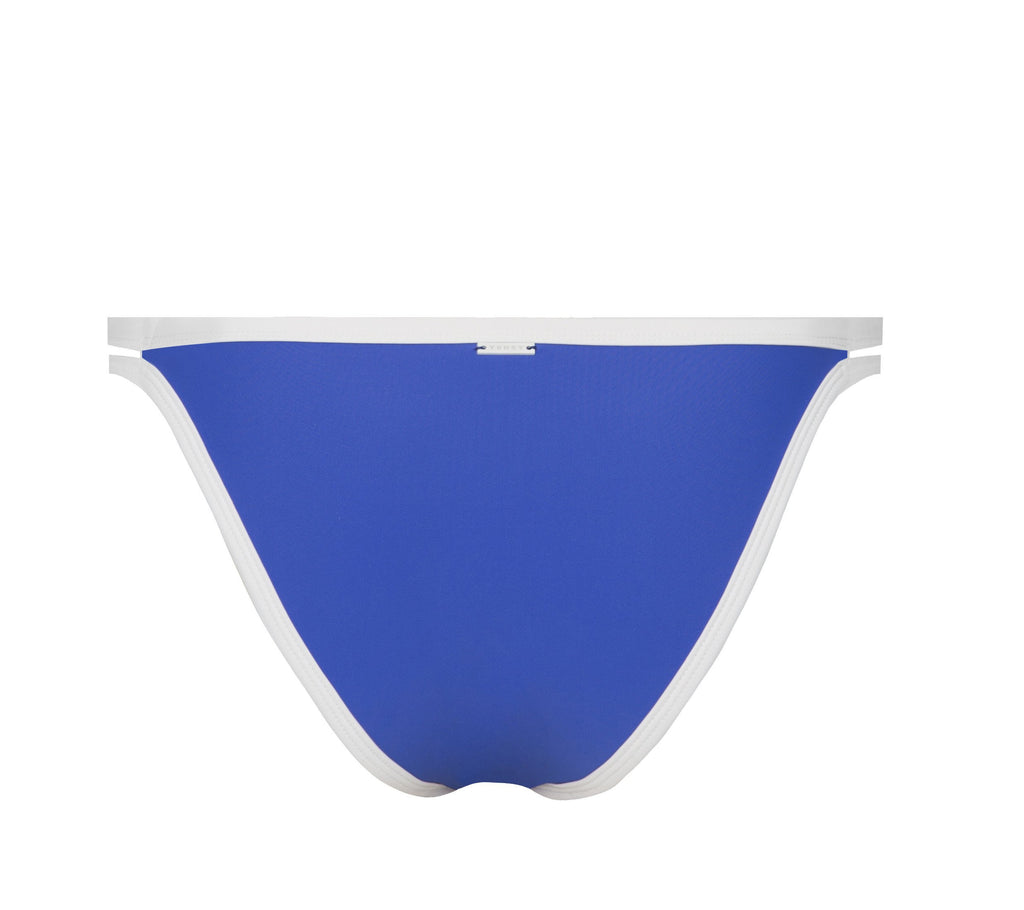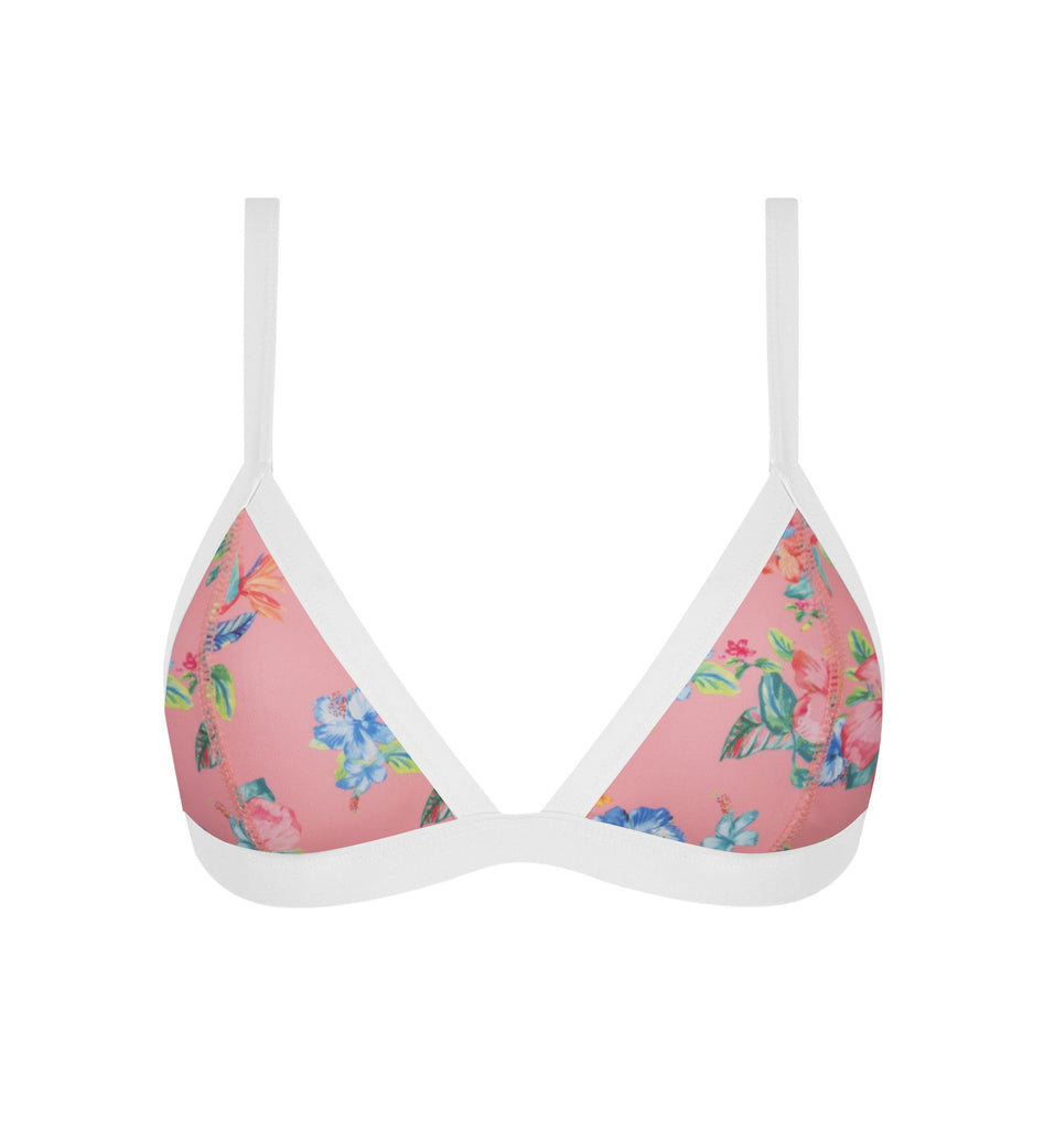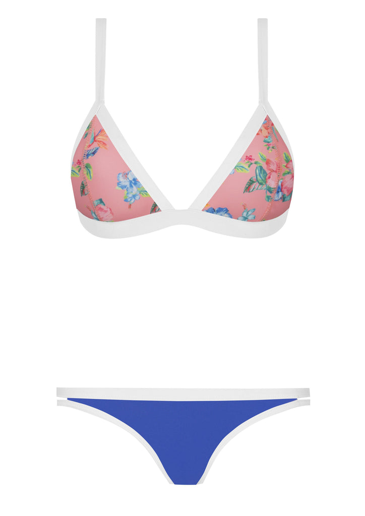 Slim neoprene triangle in salmon Maui floral + Double strap bottom in lapis lazuli